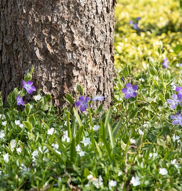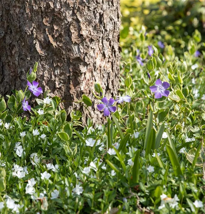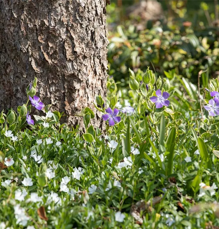 Das Kleine Garten-Immergrün 'Alba' setzt schöne Akzente gemeinsam mit: