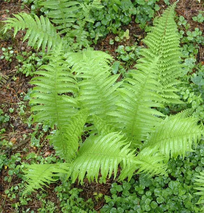 Der Schmale Garten-Filigranfarn 'Proliferum' setzt schöne Akzente gemeinsam mit: