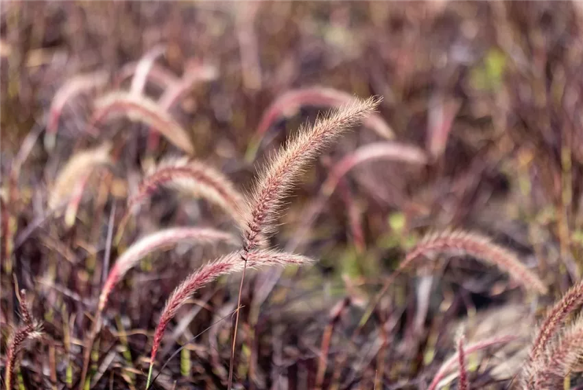 Pennisetum setaceum 'Fireworks'(s) Bei der Gartengestaltung mit Gräsern kommt es zwar vor allem auf den persönlichen Geschmack an, aber die Einbindung von Ziergräsern lohnt sich einfach immer. Die bunten Halme der Gräser bringen neue Strukturen in den Garten und schaffen ein zauberhaft raschelndes Ambiente, das kaum eine andere Pflanze schaffen würde.