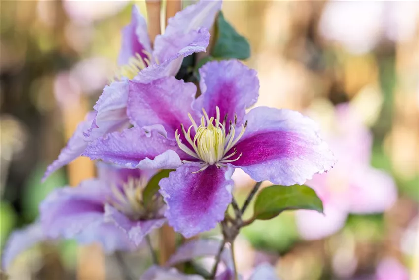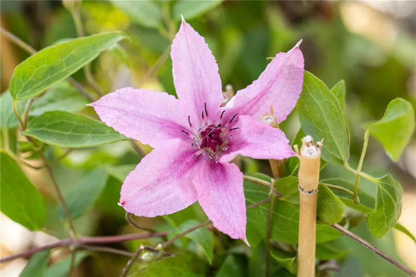 Clematis 'Comtesse de Bouchaud' Wer seinen eigenen Garten gestalten möchte, der hat oft schon ganz genaue Vorstellungen, wie das Gesamtbild später aussehen soll. Und bei vielen Gartenbesitzern spielen dabei auch Kletterpflanzen eine große Rolle. Der Vorteil der Gartengestaltung mit Kletterpflanzen? Sie sind pflegeleicht, wuchsfreudig und sorgen in Windeseile für ein harmonisches Gesamtbild. Denn Kletterpflanzen fühlen sich nicht nur an Rankhilfen wohl, sie können auch Mauern, Sichtschutzzäune oder ganze Hauswände begrünen. Das macht sie zu sehr vielseitigen Mitbewohnern und sorgt dafür, dass sie in unseren Gärten immer beliebter werden. Dabei spielt es keine Rolle, ob sie Blüten tragen oder nicht. Kletterpflanzen bringen immer einen Hauch Märchen mit sich, der definitiv in jeden Garten passt. Egal, ob romantischer Bauerngarten, geradliniger Formgarten oder wilder Naturgarten – Kletterpflanzen passen einfach immer. Nicht nur im Beet, auch im Kübel machen sie eine gute Figur. Warum sollte sich also Gartengestaltung mit Kletterpflanzen nur auf den Garten und nicht auch auf den Balkon beschränken?