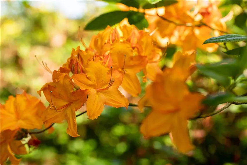 Rhododendron luteum 'Fireglow' Oft hat man als Gartenbesitzer von Azaleen gehört und sich wahrscheinlich gefragt, ob das nicht das gleiche wie Rhododendren ist. Tatsächlich gehören beide mittlerweile der gleichen Gattung an, das war aber nicht immer so. Azaleen waren ursprünglich eine eigene Gattung, werden aber durch das ähnliche Aussehen mittlerweile zur Gattung der Rhododendren gezählt. Beide haben Rhododendronarten und -sorten, die bei der Auswahl für den Garten ganz vorne mit dabei sind. Bei den Azaleen sind das die Knap-Hill-Hybriden und die Japanischen Azaleen. Aber auch als Zimmerpflanze machen sie eine gute Figur und so ist es nicht verwunderlich, dass die Zimmer-Azaleen auch unter den Top 3 der beliebtesten Azaleen sind. Beim Rhododendron sind das die Großblumigen Hybriden, die im Garten durch ihren dichten Wuchs und die beeindruckenden Blüten gerne als Heckenpflanzen eingesetzt werden. Da es aber mehr als 1000 Arten gibt, kann das noch nicht alles gewesen sein, oder? Und so ist es auch, denn es gibt noch viele schöne Rhododendronarten und -sorten, die es zu entdecken gilt.