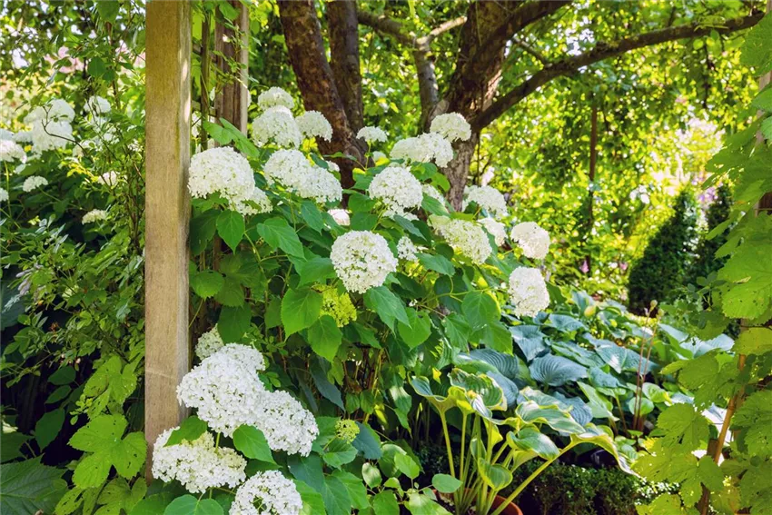 Hydrangea arborescens Hortensien sind inzwischen in fast jedem Garten anzutreffen. Bekommen sie einen feuchten und humusreichen Standort im Halbschatten, werden sie sich prächtig entwickeln und mit vielen imposanten Blüten begeistern. Die Arten der umfangreichen Hortensienvielfalt sind jedoch bei Trockenheit etwas anfällig und müssen dann zusätzlich gewässert werden. Manche Sorten sind auch etwas frostempfindlich.