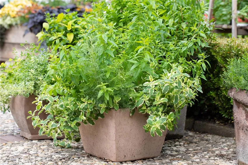 Mentha x piperita Estragon zählt ebenfalls zu den beliebten Küchenkräutern. Während der Französische Estragon kälteempfindlich ist, gedeiht der Russische Estragon überall, schmeckt aber oft bitterer. Liebstöckel kann auch im lichten Schatten gut gedeihen. Da sich dieses Kraut sehr stark ausbreitet, sollte man eine Einzelstellung wählen. Das Sommer-Bohnenkraut ist für sein pfeffriges Bohnenaroma beliebt. Besonders gut gedeiht es an einem sonnigen Standort. Da es einjährig ist, wird es erst im April ins Freiland ausgesät.