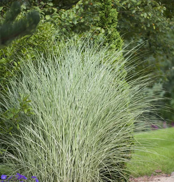 Das Garten-Chinaschilf 'Morning Light' (Miscanthus sinensis) ist mit seiner grün-weißen Blattfärbung ein dekoratives Gestaltungselement im Garten, welches sich an einem sonnigen bis halbschattigen Standort mit einem möglichst durchlässigen, humosen, nährstoffreichen Boden am wohlsten fühlt. Die silbrigen Blütenwedel schmücken die aufrecht und horstbildend wachsende Pflanze ab Herbst. Bei günstigen Bedingungen erreicht dieses winterharte Gras eine Höhe von ca. 1,2 m und wird bis zu 80 cm breit.
