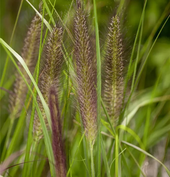 Das Garten-Federborstengras 'Red Head' (Pennisetum alopecuroides) ist mit seiner mittelgrünen Blattfärbung ein dekoratives Gestaltungselement im Garten, welches sich an einem sonnigen Standort mit einem möglichst durchlässigen, nährstoffreichen Boden am wohlsten fühlt. Die roten Blütenwedel schmücken die buschig wachsende Pflanze ab Sommer. Bei günstigen Bedingungen erreicht dieses winterharte Gras eine Höhe von ca. 60 cm und wird bis zu 80 cm breit.