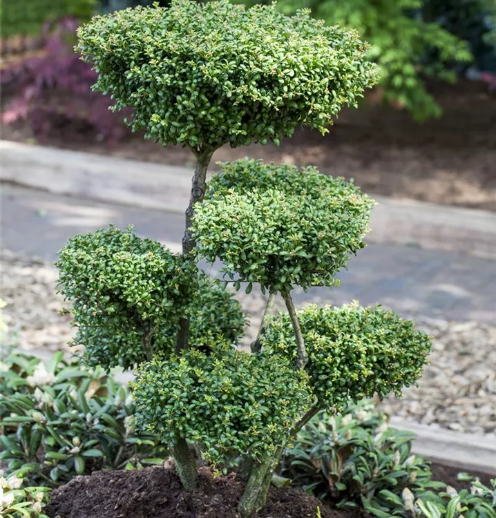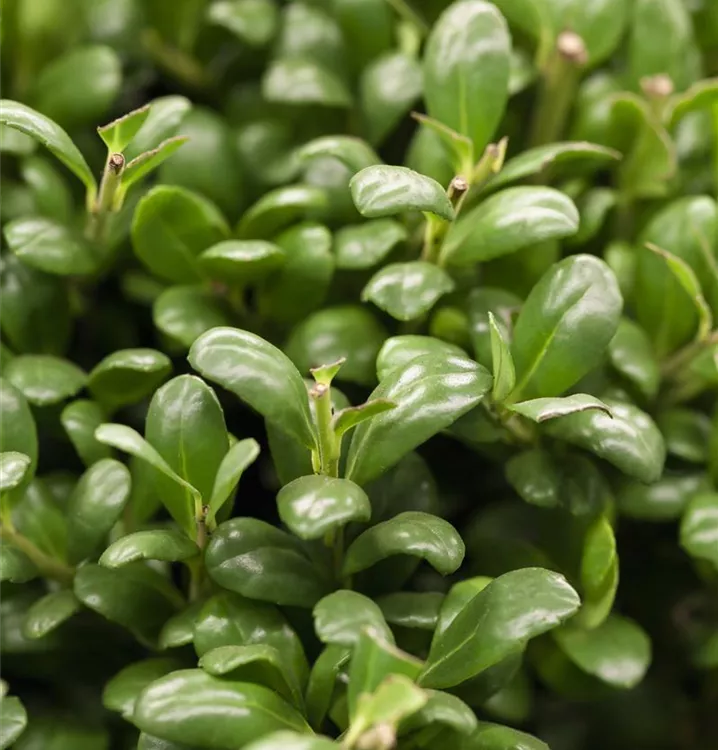 Der Löffel-Ilex 'Convexa' (Ilex crenata) ist ein aufrechter, dichter Strauch mit dekorativen, schwarzen, runden Früchten, die sehr lange haften. Die cremeweißen Blüten erscheinen von Mai bis Juni.
