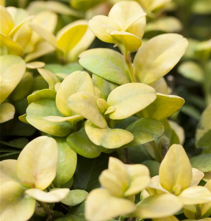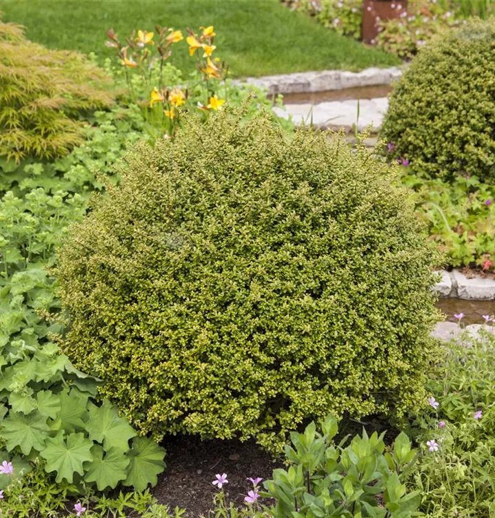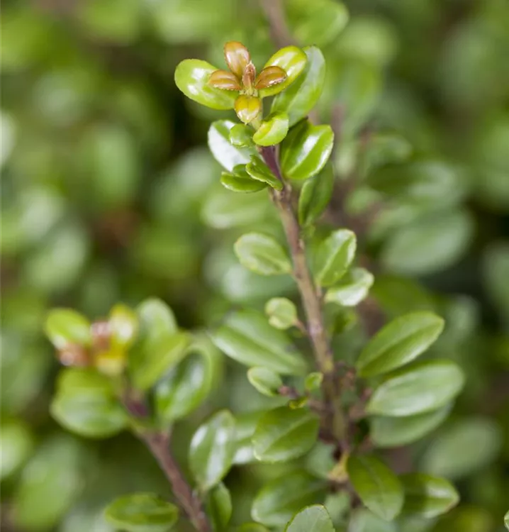 Der Berg-Ilex 'Glorie Gem' (Ilex crenata) ist ein kompakter Kleinstrauch, der cremeweiße Blüten hervorbringt. Sie erscheinen von Mai bis Juni. An einem sonnigen bis halbschattigen Standort mit durchlässigem, lockerem, schwachsaurem Boden erreicht er gewöhnlich eine Höhe von ca. 1,5 m und wird ca. 1,2 m breit.
