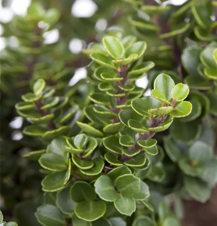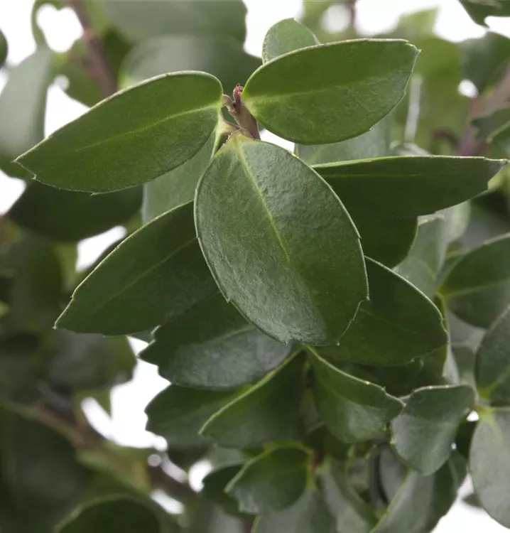 Der Berg-Ilex 'Mariesii' (Ilex crenata) ist ein aufrechter, säulenförmiger Strauch mit dekorativen, schwarzen Früchten, die sehr lange haften. Die cremeweißen Blüten erscheinen von Mai bis Juni.