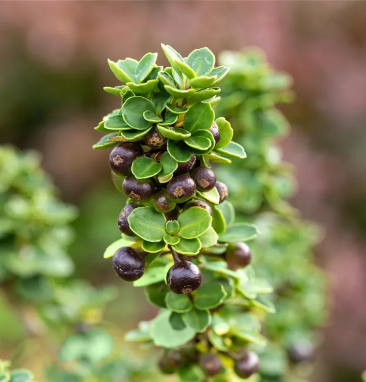 Besonders dekorativ sind die schwarzen Früchte von Ilex crenata 'Mariesii'. Haften sehr lange.
