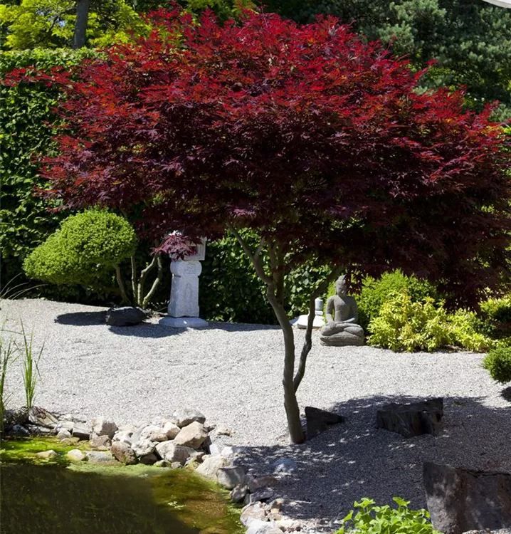 Der Rote Fächerahorn 'Atropurpureum' weist eine gute Frosthärte auf.