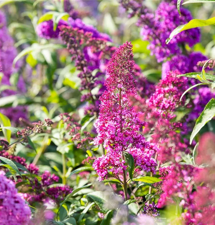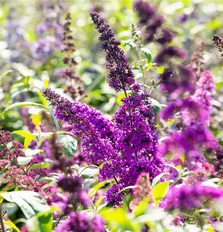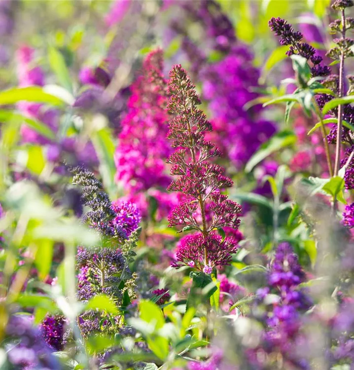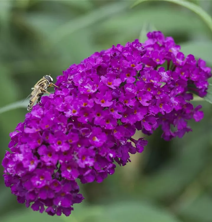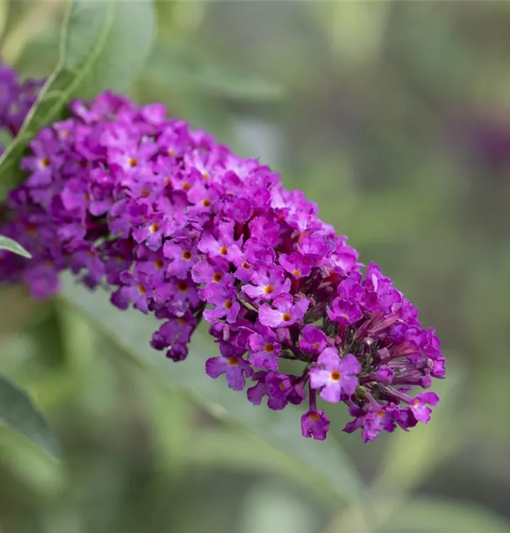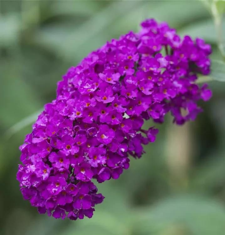 Die purpurroten Blüten des Sommerflieder 'Royal Red' erscheinen in Rispen von Juli bis Oktober. Diese werden etwa 30 - 50 cm groß und sind stark duftend.