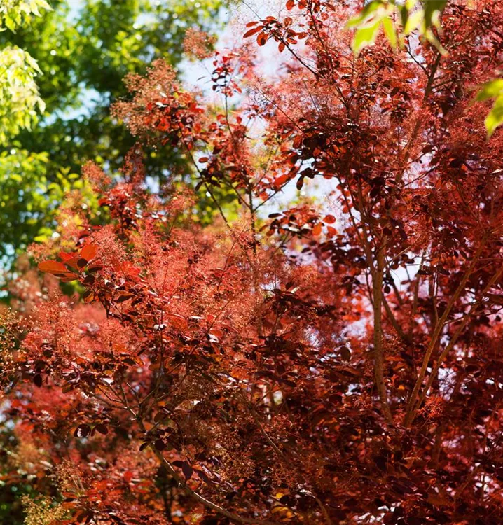 Besonders dekorativ sind die silbergrauen Früchte von Cotinus coggygria 'Royal Purple'. Diese erscheinen ab August.