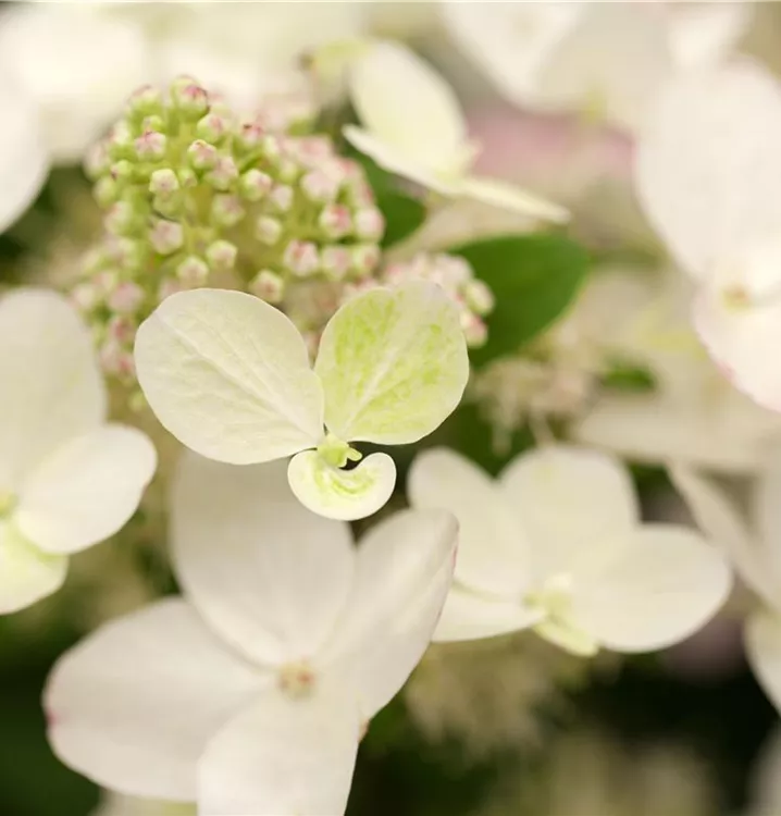 Die rosafarbenen Blüten der Rispenhortensie 'Magical Fire'® erscheinen in Rispen von August bis Oktober. Diese sind angenehm duftend.