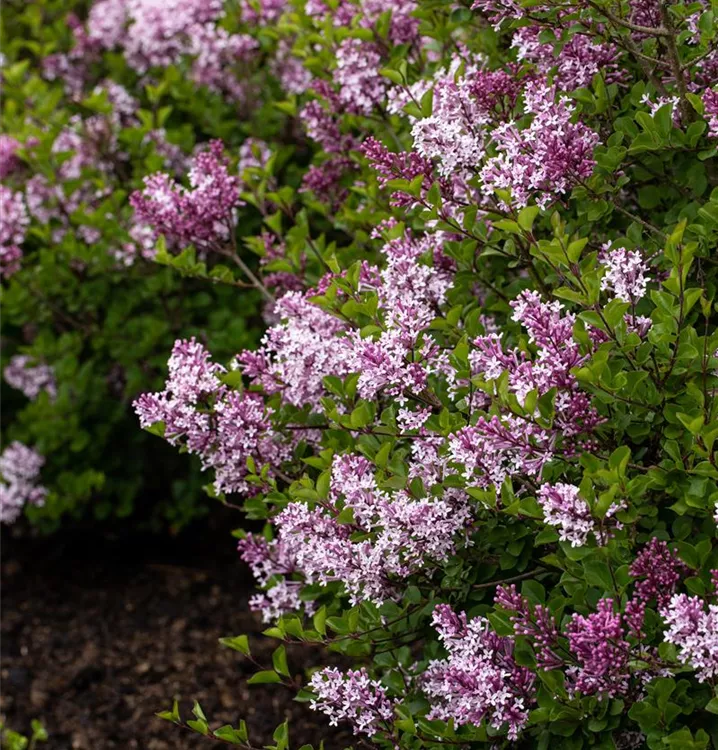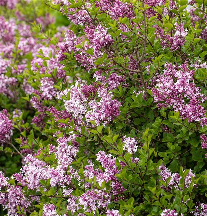 Der Meyer´s Flieder 'Palibin' (Syringa meyeri) ist ein buschiger, dichter, rundlicher Kleinstrauch, der lilafarbene, in Rispen angeordnete Blüten mit einem starken Duft hervorbringt. Sie erscheinen von Mai bis Juni. An einem sonnigen Standort mit durchlässigem, nährstoffreichem Boden erreicht er gewöhnlich eine Höhe von ca. 1,2 m und wird ca. 1,2 m breit.