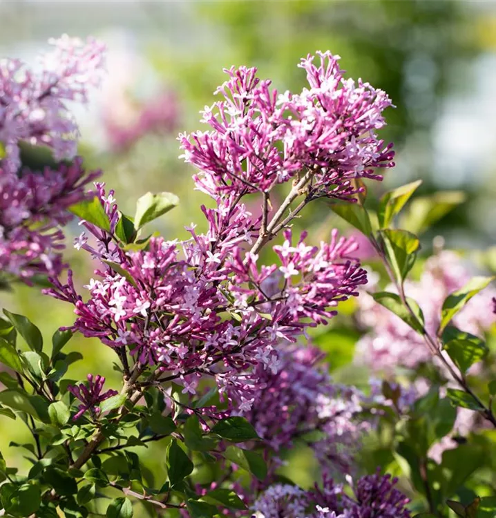 Die lilafarbenen Blüten des Meyer´s Flieder 'Palibin' erscheinen in Rispen von Mai bis Juni. Diese sind stark duftend.