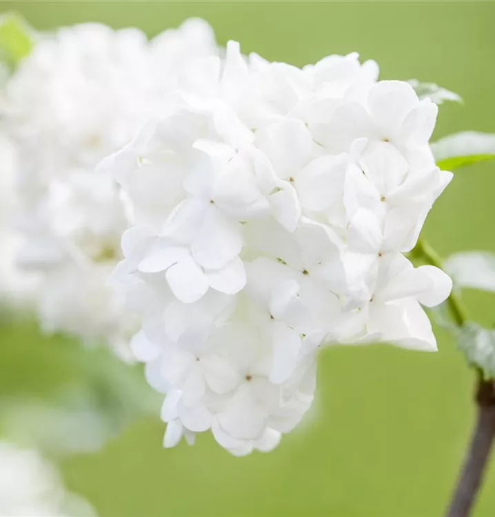 Die weißen, gefüllten Blüten des Japanischen Schneeball 'Summer Snowflake' erscheinen in Trugdolden von Mai bis Juni. Diese sind stark duftend.