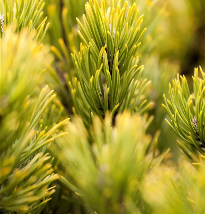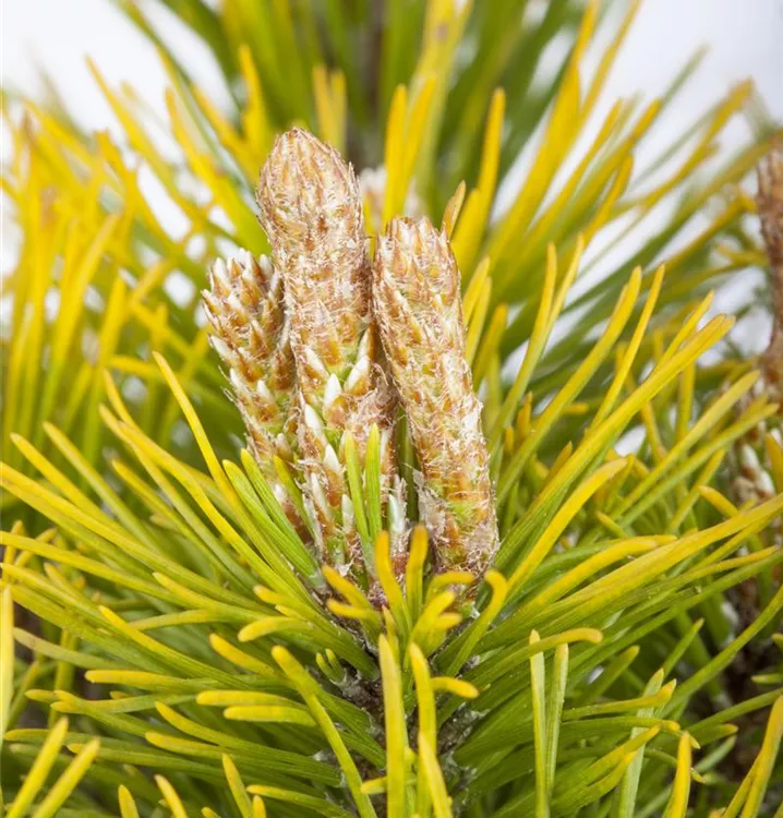 Sehr dekorativ. Die Berg-Kiefer 'Carsten's Wintergold' ist immergrün. Ihre Nadeln sind mittelgrün. Hellgelber Austrieb. Mit seinem goldgelben laub setzt sie schöne Akzente im Winter.