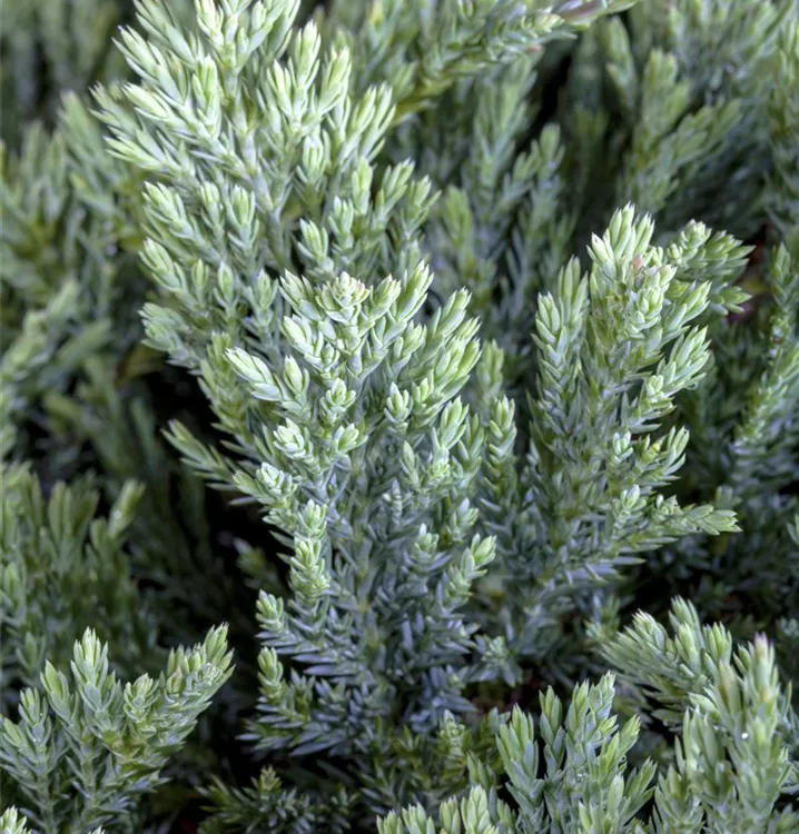 Der Teppichwacholder 'Blue Chip' ist immergrün. Seine Nadeln sind blau-grau, schuppenförmig.