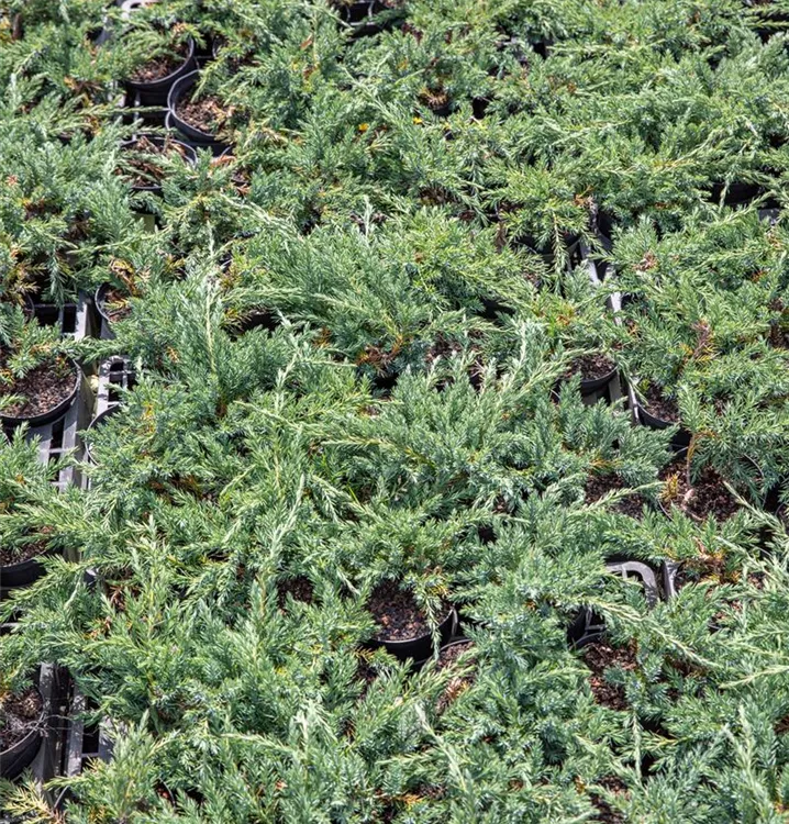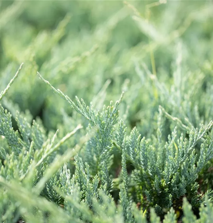 Der Teppichwacholder 'Blue Chip' (Juniperus horizontalis) ist ein Zwergstrauch, welcher dicht, flach, kriechend wächst und gewöhnlich eine Höhe von ca. 25 cm und eine Breite von ca. 1,1 m erreicht. Seine schuppenförmigen Blätter haben eine blau-graue Färbung. Dieses Gehölz ist gut frostverträglich. Er bevorzugt durchlässigen Boden in sonniger bis halbschattiger Lage.