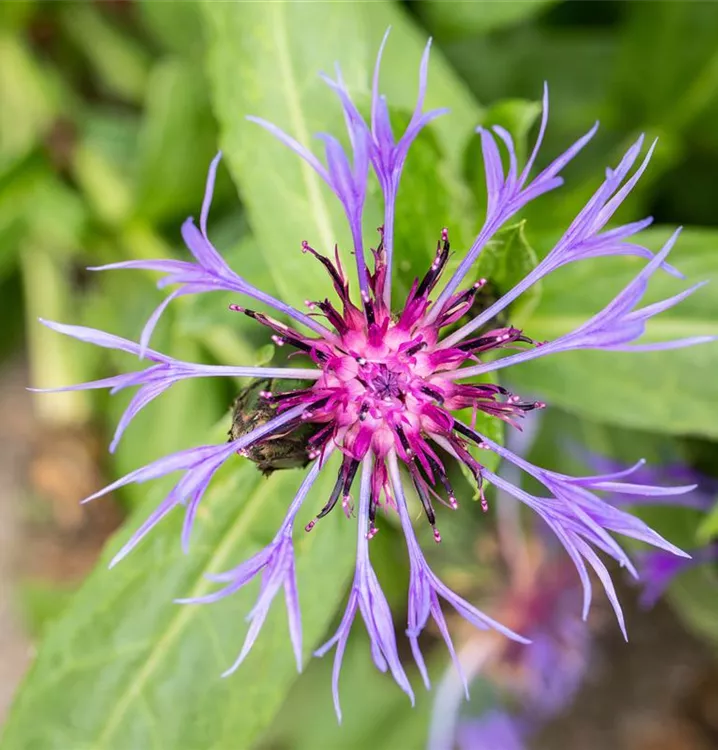 Centaurea montana bildet körbchenartige, blaue Blüten ab Mai. Diese verströmen einen angenehmen Duft.
