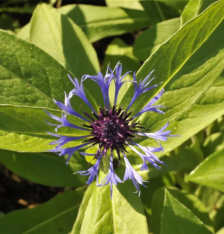 Die sommergrünen Blätter der Berg-Flockenblume sind dunkelgrün, lanzettlich.