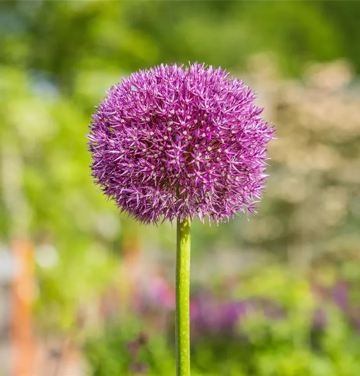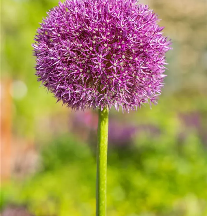 Die lilafarbenen, ballförmigen Blüten erscheinen von Mai bis Juli.